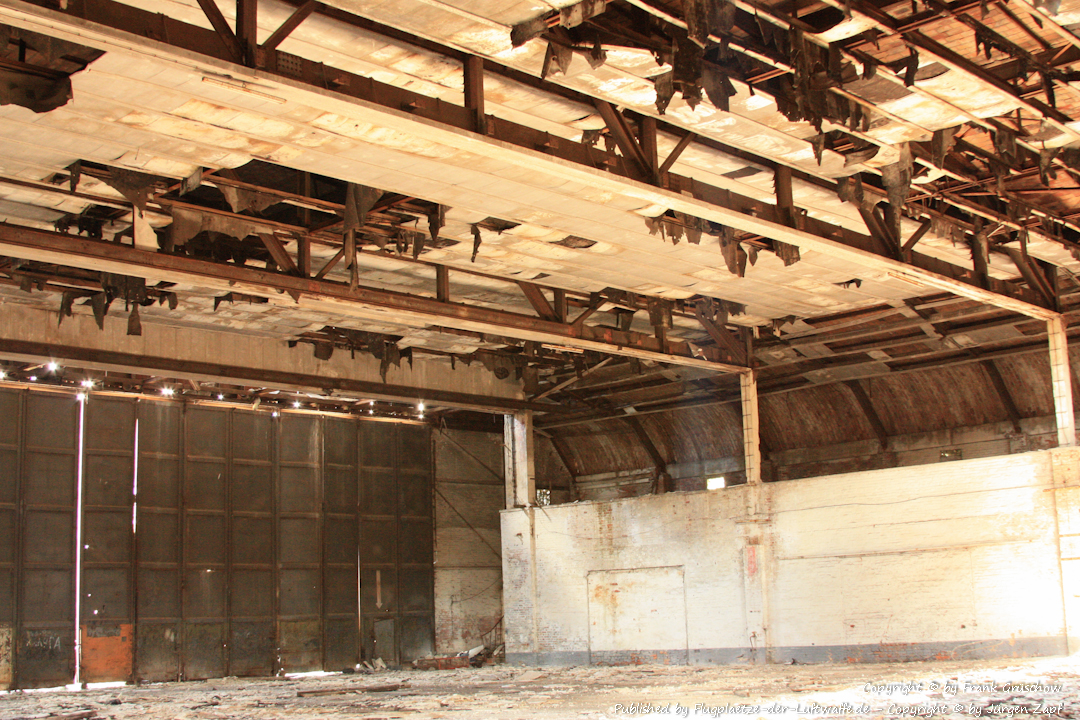 Neue Aufnahmen der Halle 2, die sich im östlichen Teil des ehemaligen Hallenbereiches befindet, zeigt deutliche Spuren des Verfalls.