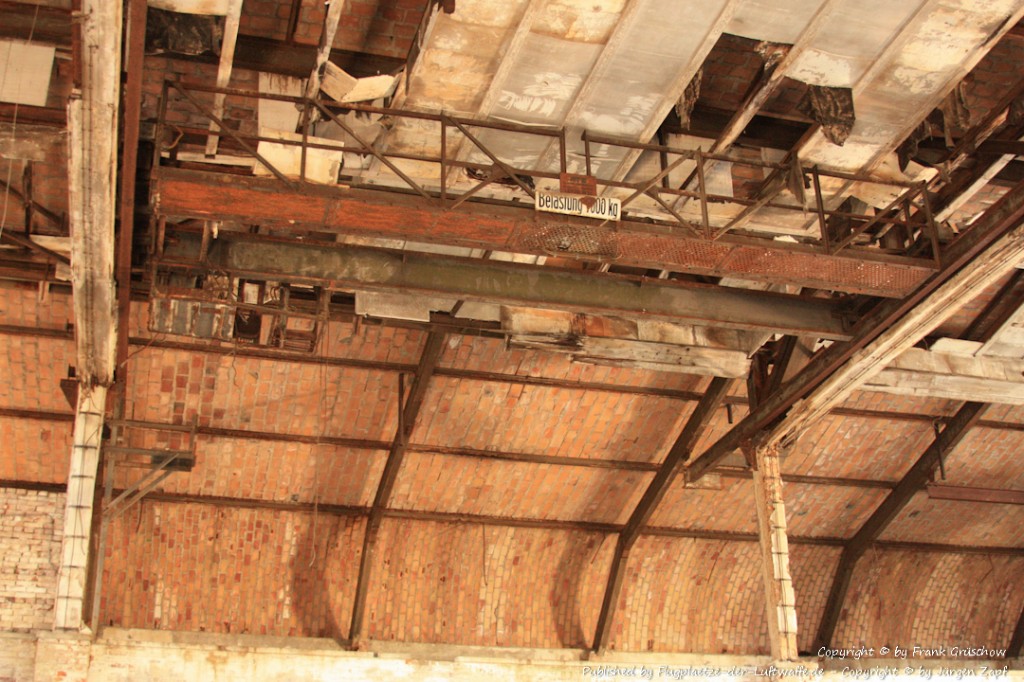Das Vermauern der Werkstätten und Bürobereiche, welches die folgende Aufnahme zeigt, geht allerdings bereits auf die Zeit der Nutzung durch die sowjetischen Streitkräfte zurück.